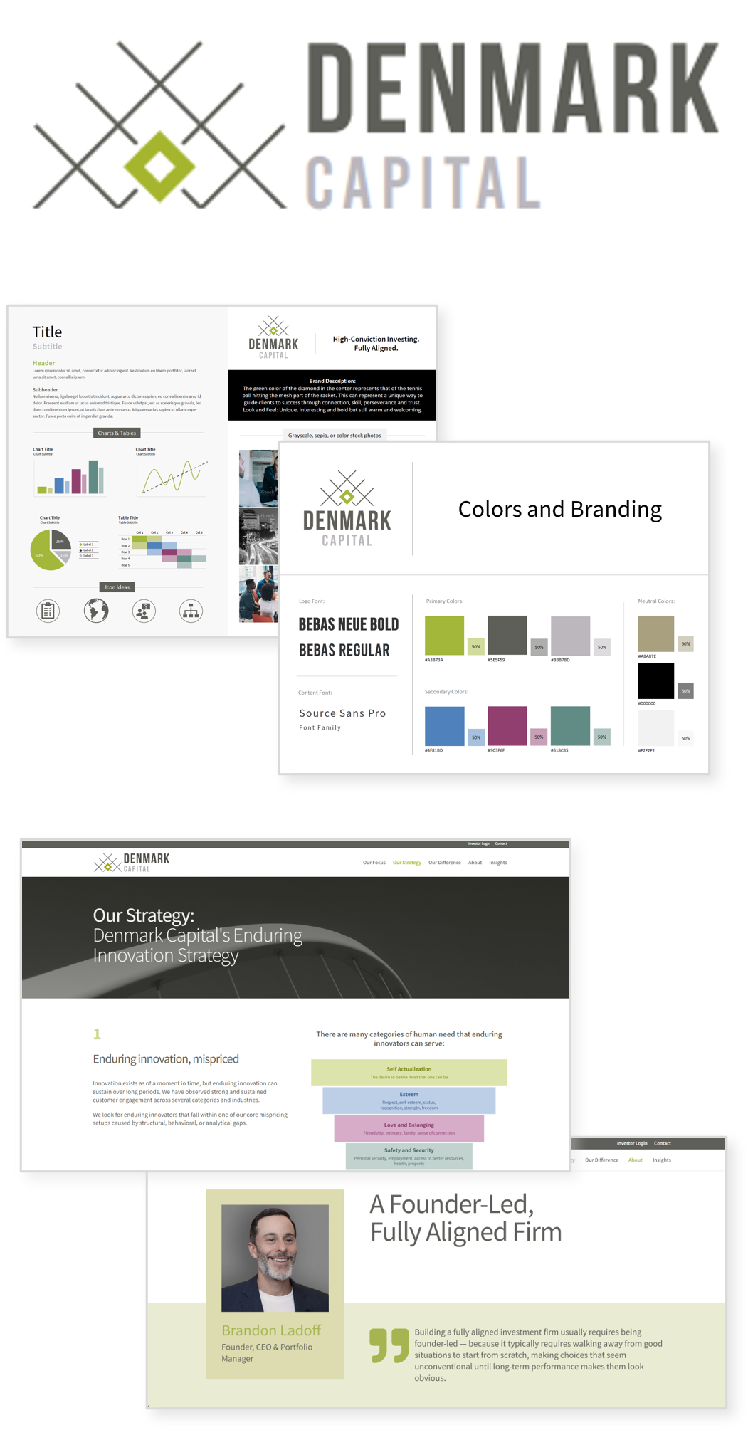 Denmark Capital was founded by an experienced portfolio manager with a strong vision for the firm and its strategy. While the approach was clear, the firm was starting from scratch on the branding and marketing front: in need of a complete brand identity, a polished pitchbook, and a website.